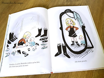 Mathilde est une petite fille pleine d'énergie qui ne se laisse pas impressionner par ce grand monde dans lequel elle vit. Elle croque la vie à pleines dents ! Un dynamisme que le texte court retranscrit parfaitement tout comme les grandes illustrations nous montrent bien la façon dont l'enfant voit le monde qui l'entoure. Mais grâce aux indices semés dans les dessins par Claire Keane, on voit que cette situation va changer. En effet, avec l'arrivée de son petit frère, Mathilde s'aperçoit qu'elle n'est plus si petite. Mais ça ne l'inquiète pas car elle découvre un nouveau rôle, celui de grande sœur. Et elle prend ce rôle très à cœur. Parce qu'un petit frère, c'est un compagnon idéal avec qui découvrir le vaste monde... et s'amuser bien sûr !